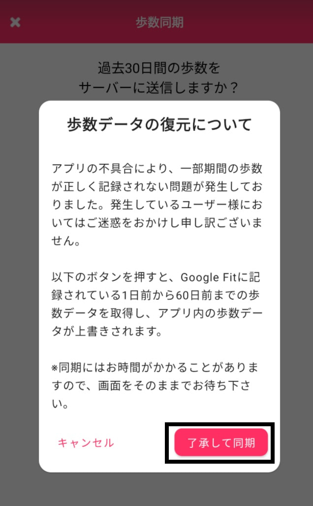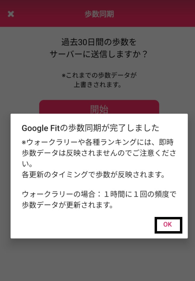 また、アプリのアップデート後にアプリ内より歩数同期をお願いいたします。