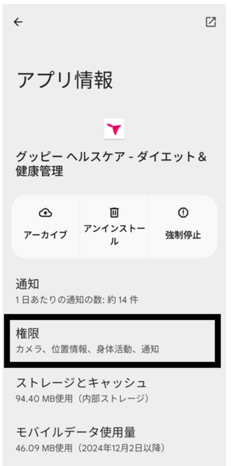 4. 「権限」や「許可」をタップ