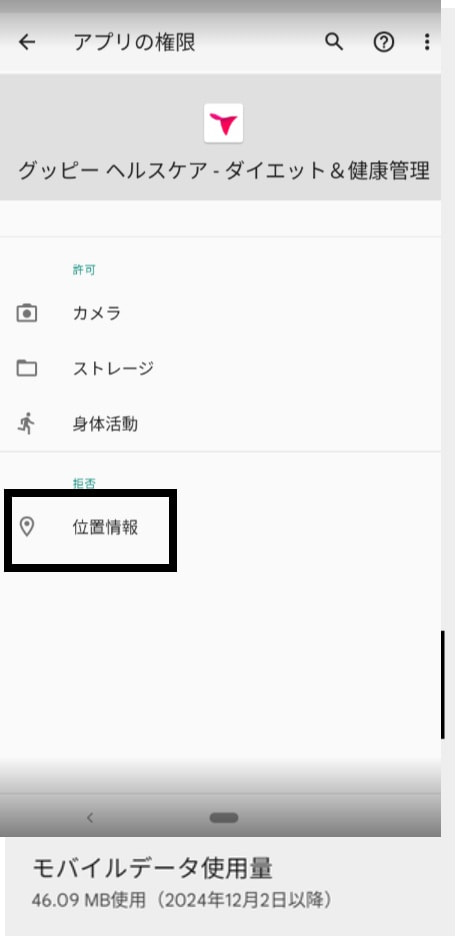 「位置情報の許可」が、”許可しない”に設定されていると、ウォーキング・ランニング・サイクリングの記録が行えません