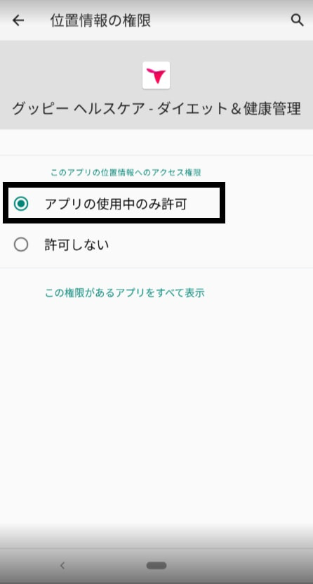 2. 「アプリの使用中のみ許可」をタップ