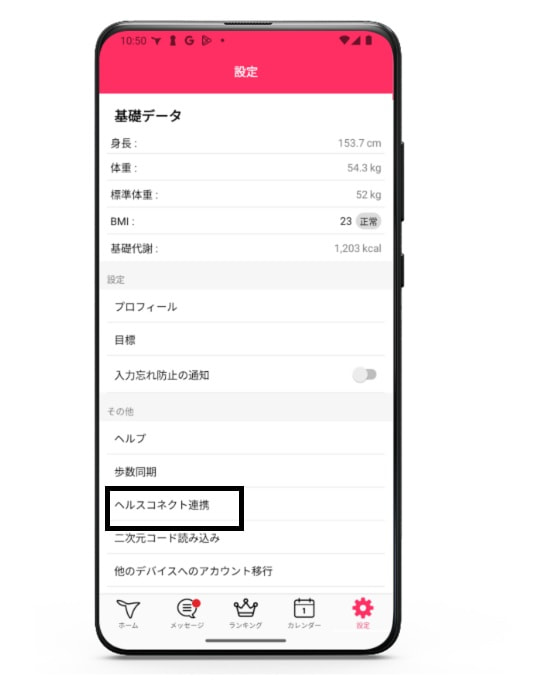 ② その他>ヘルスコネクト連携をタップ