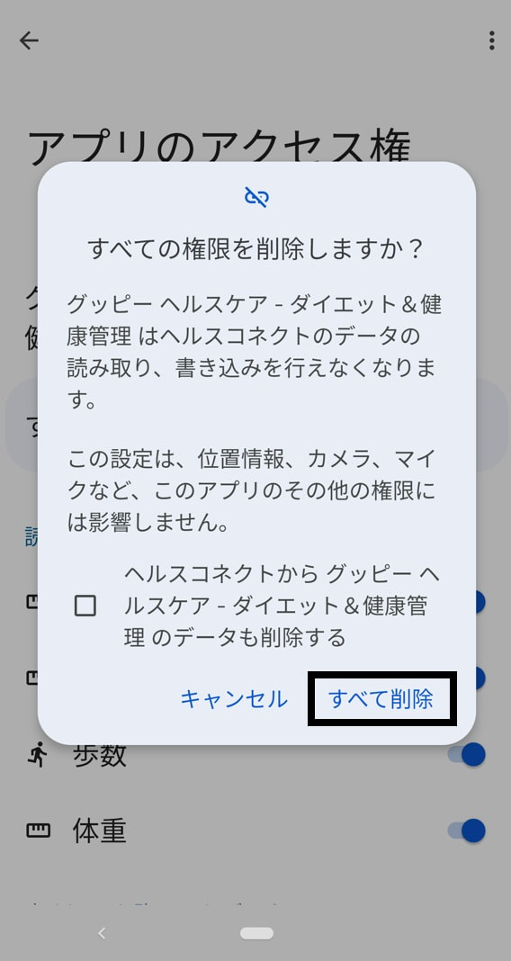 【Android】ヘルスコネクトとの連携を解除する方法