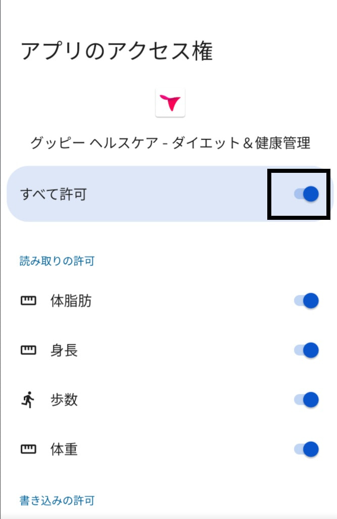 ⑥すべて許可をオフにする