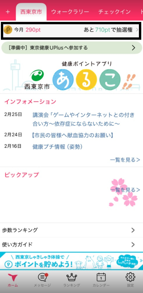 ②上部にあるポイントメニューをタップ