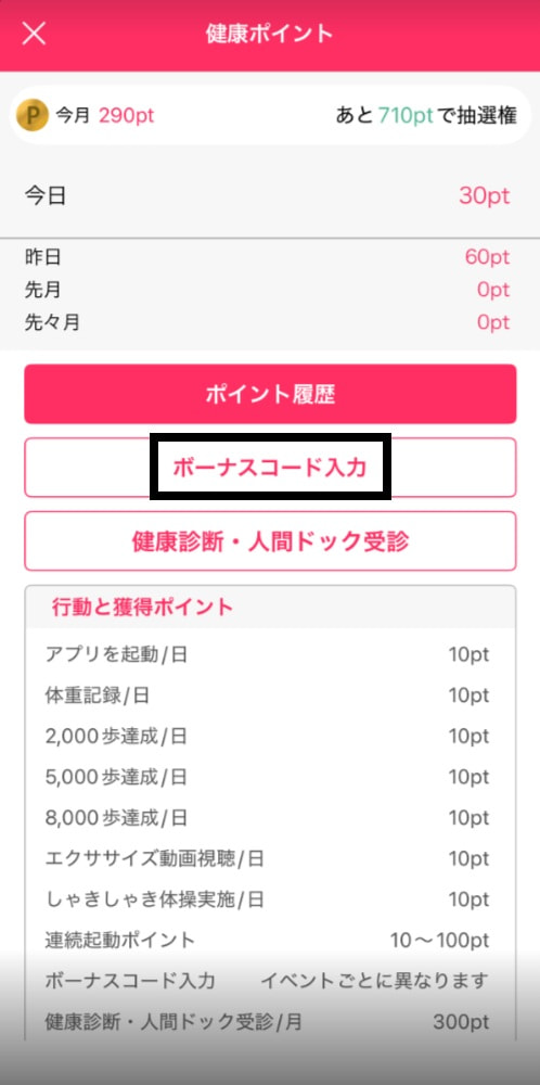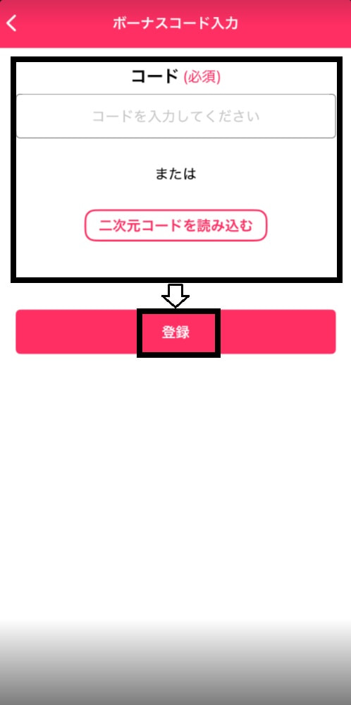 ③「ボーナスコード入力」タップ